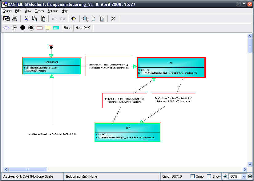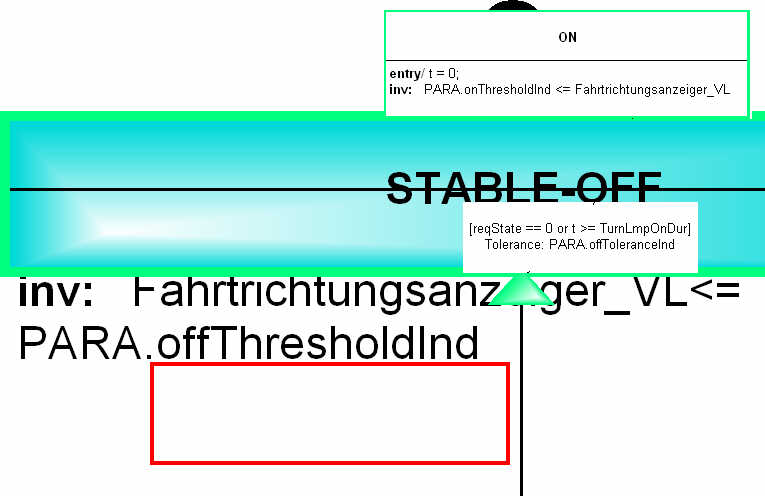 I have a question concerning the animation of a ME model via the API tool from another application. I have a model with several statecharts and I want to visualize the process of stepping through it. Actually it is most convenient to have all statecharts of interest opened at once and fit them to the screen, because they influence each others behaviour and that is what should be observed. When I use the API server to highlight the states and transitions while stepping through the model I have the problem, that the red frames used for animation, leave some kind of artefacts on the already visited elements. I could use an refresh after each step, which would resolve that problem, but then the display would be flashing up all the time, which is somehow awkward for the viewer. Does anybody of you know a possibility how to solvethis issue?