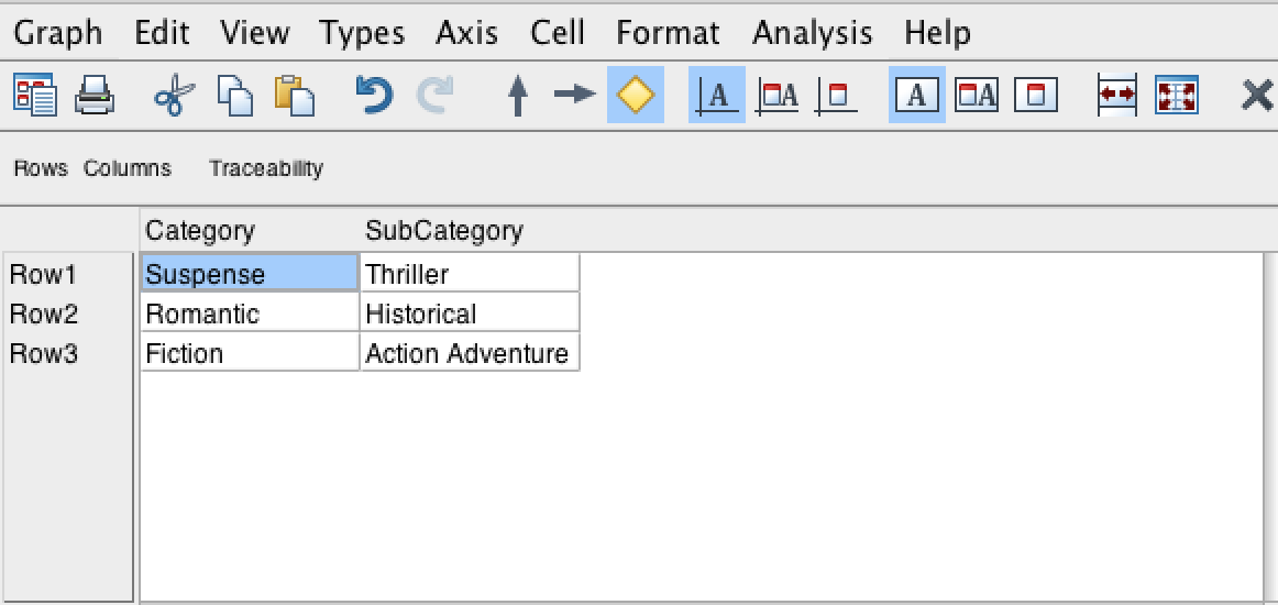A workaround implemented was to create a graph to represent the values stored into file. This graph is represented as Matrix (see Figure).