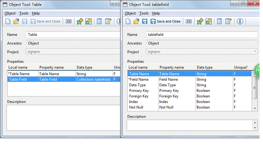 I have another problem. My table contains a string property Table Name and a collection property of table field object, which has table name and other field properties (refer to the screenshot below). I put table name in each table field object is because I will refer to table field objects by table name.