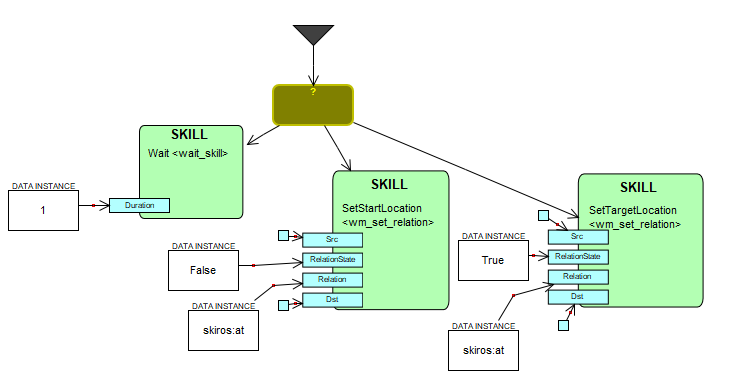 At the moment, your PropConnector objects have no name of their own, but instead reveal the name of the port on an object in the subgraph (e.g. Src on SetStartLocation). If we follow the analogy of a function, the PropConnector should be able to set its own name, which allows better specification of the semantics of the port in the context of this graph. We could consider the signature to be (StartSrc, StartDest, TargetSrc, TargetDest). It's better that those are explicitly revealed and named — rather than just being "any port I haven't connected yet", revealing and creating a strong coupling with the internal details of the sub-object name (SetStartLocation), and a port within its subgraph (Src).