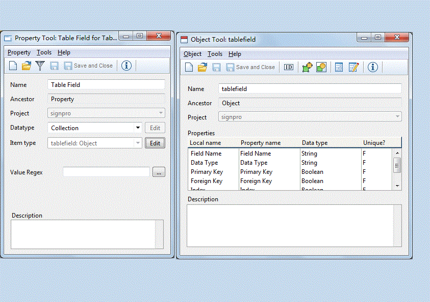 I use a template to host table field objects, which are defined as collection property of a table (please refer to two diagrams for the design). What I'm trying to do is to find the table field object with foreign key first, then navigate from the port and role on slave table side to the role and port on master table side through a relationship, and finally identify the table field object of the master table. Unfortunately, this doesn't work.