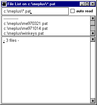 - Click in the top pane and write the path of the patch files' directory followed by *.pat, (e.g. c:\meplus\*.pat) (Figure 2).
