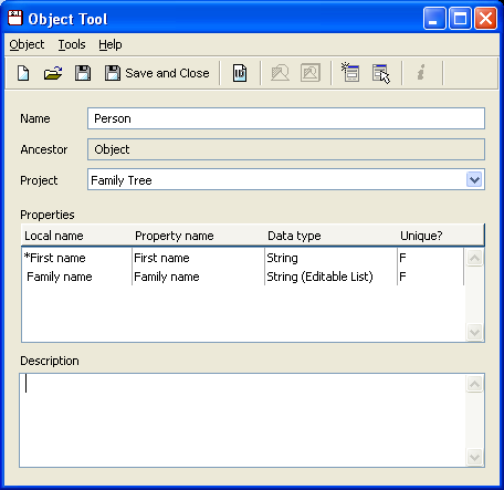 we will create the ‘Family name’ property. In the Object Tool, again
