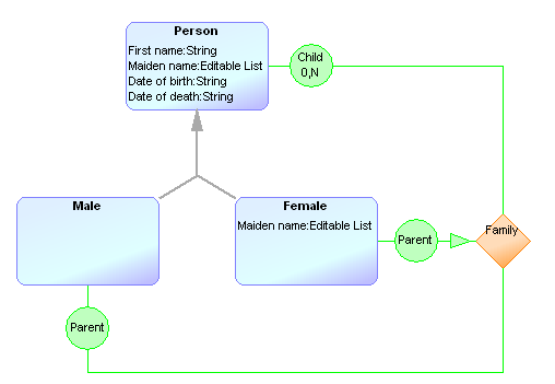 Figure 4-1. Family Tree metamodel with specialized Male and Female objects.