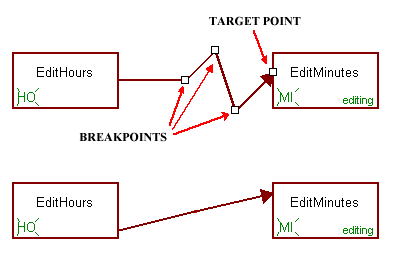 any breakpoints along it, are marked with small squares. Figure 4-15 below shows the Diagram Editor