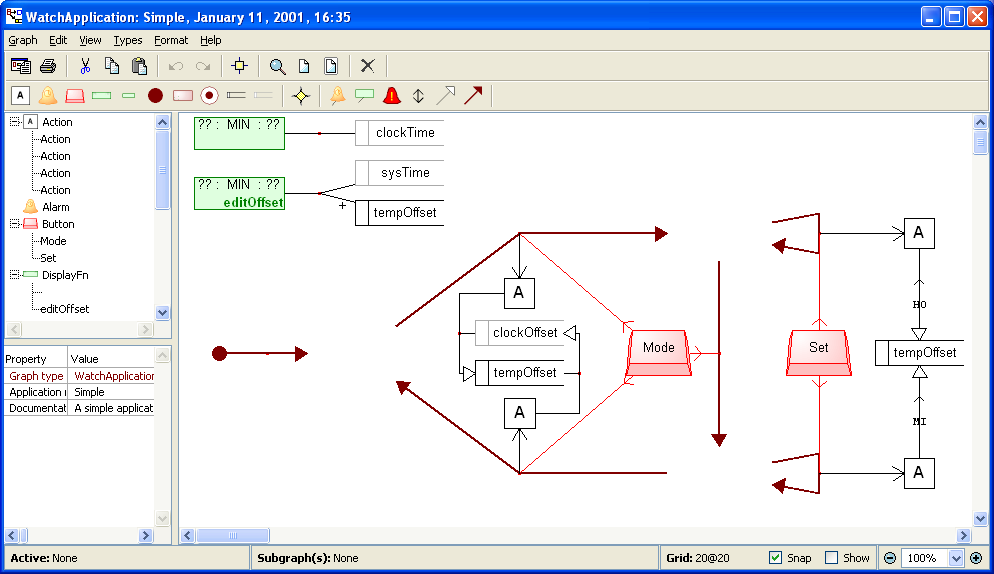 the result of hiding State objects in a Watch Application Diagram. Note that