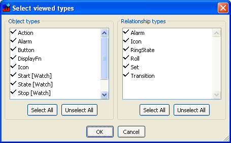 Figure 4-19. A dialog for selecting object and relationship types to be shown.
