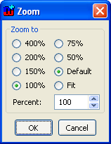 predefined zoom factor, fit or default zoom from the zoom pull-down list located