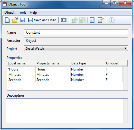 Figure 2-11. The Object Tool with 'Constant' definitions.