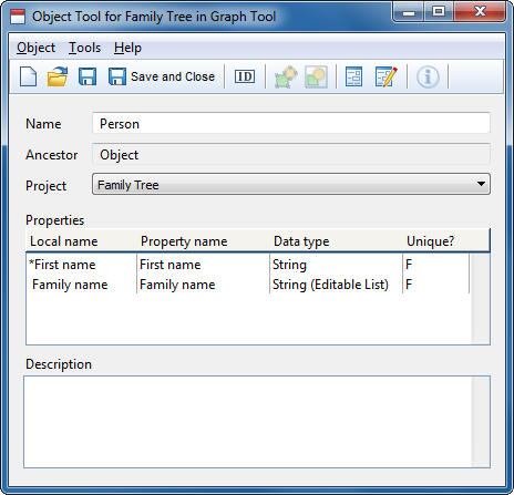 Figure 3-9. Graph Tool’s Types page with one object defined.