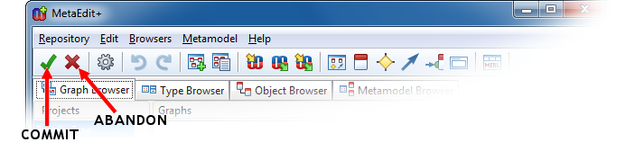 Figure 3-14. Commit and Abandon buttons in the MetaEdit+ launcher.