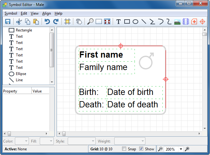 Editor for the ‘Male’ object. To make the drawing of new