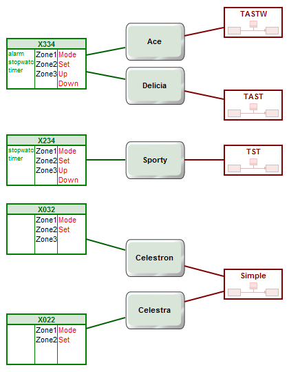 wristwatch models. In the diagram, each individual watch model like Ace is shown