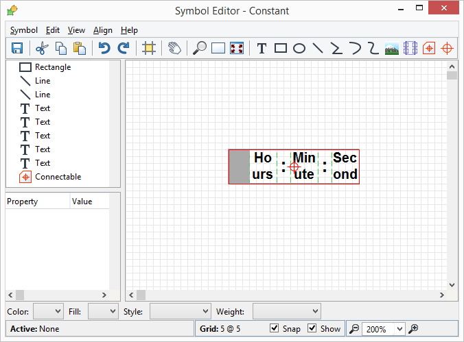 Confirm the creation of the ‘Constant’ type by pressing Save (since this is the first time you have changed the metamodel in this session, it may take a few seconds). To complete the definition of the new object type, we need to create a symbol for it. Launch the Symbol Editor by pressing the Symbol button on the Object Tool. Create a symbol similar to the one shown on Figure 2-12 (you can also copy an existing symbol like the one used for ‘Variable’ and modify it for this purpose). Remember to save the symbol when leaving the Symbol Editor.